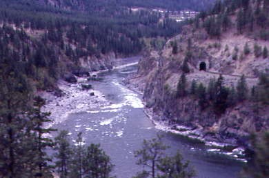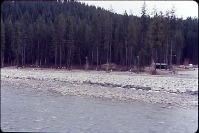 We followed Beavermouth River downgrade through Griffith and Rogers to Beavermouth and the junction with the Columbia River again, as the river's course took it far to the north and was now decscending from the southeast. The river has Mica Dam downstream and since the spring runoff had noty et occurred, the river level was down.