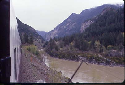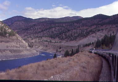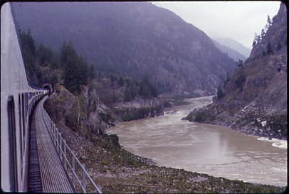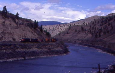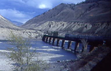 The Canadian National crosses the Fraser River at the junction of the Thompson River and we would now follow the river into the Thompson River Canyon.