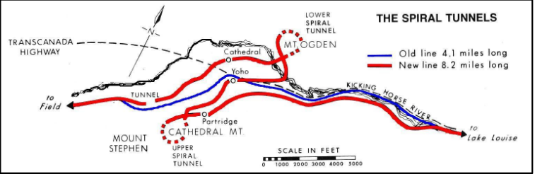 The above passage and schematic taken from Canadian Pacific Railway Spiral Tunnels Centennial by Cor van Steenis, a special report for Canadian Railway Observations.