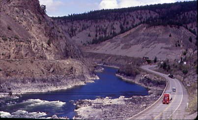 We followed the east side of the Fraser River for about eight more miles to Lytton, where we diverted from the muddy Fraser River and started to follow the deep blue Thompson River to Kamloops.