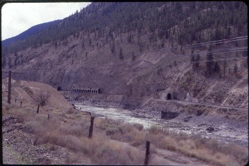 With the Canadian Pacific main line above us, we continued east along the Thompson River.