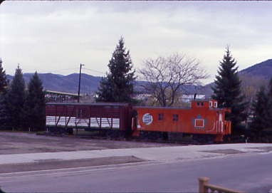 Canadian National stock car 800042, exx. Canadian National 172473, exxx. Canadian National 344700-346699 series box car, nee Grand Trunk Railways 24500-246499 series box car built circa 1913 and Canadian National wooden caboose 76058, exx. Intercolonial Railways 87787 1923, nee Canadian Government Railways 8778 built circa 1900. Both these were previously displayed at the Travel Infocentre at Halston Esso on Kamloops Indian Reservation.