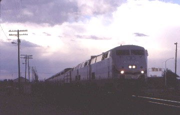 I then walked to Greyhound to buy today's Arizona Daily Star and noted that Amtrak no longer uses the station but is now housed in a pre-fabricated structure. We departed a mere forty minutes late as every freight train I had seen to this point had been waiting in sidings. Credit the Union Pacific dispatchers for an excellent job of train handling. East of Tucson, our train took the low grade line from Vail to Mescal, before we descended to Benson for a short two-spot passenger stop then crossed the Santa Cruz River prior to attacking the grades of the Dragoon Mountains. Once over this divide, the Sunset sped across the Wilcox Playa and I went to the dining car for lunch having a Black Angus steak burger which took me almost to New Mexico. My tablemate was on a circle trip of America by train and we had an excellent conversation. Our train entered New Mexico at Steins and made its way to Lordsburg as I continued to relax, which is what I really needed. We continued to Deming under a mostly cloudy sky after crossing the Continental Divide and arrived just an hour late and as I detrained, the conductor told me that Train 1 should be here on time.