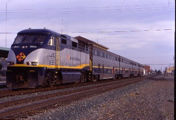 SacramentoI walked into the station to find my brother Bruce, who worked as the Amtrak agent there, and we went across the street to Lucy's for lunch where I enjoyed a French dip sandwich as Bruce and caught on several topics. As he had to return to work, I went to the Century Theatre at the Downtown Mall to see "Austin Powers Goldmember" and laughed at several scenes. Afterwards, I walked to Old Sacramento to see what the California State Railroad Museum had for their outside displays. New arrivals were Southern Pacific SD45T-2 6819 and Amtrak F40PH 281, an old friend of mine. I visited the bookstore before returning to the depot where I met Bruce and said goodbye to him then went out to the platform to watch trains arrive and depart before my train exited the storage track, crossed over and pushed into the station.