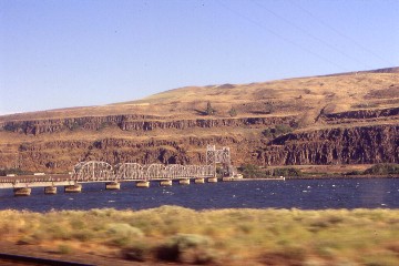 Empire Builder 28/8 6/16/2002I boarded and found a large window seat, very happy to be aboard for my trip to Minneapolis. It was a cloudy afternoon as we departed on time and made our way across the Columbia River to our first station stop in Vancouver, Washington then travelled east into the Columbia River Gorge as I had a hot dog dinner and enjoyed the ever-changing scenery. Mount Hood made an appearance and by Bingen-White Salmon, it became clear and windy.