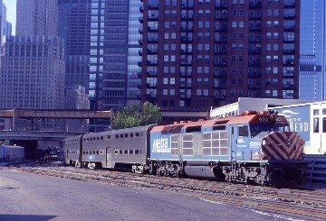 We entered Illinois then pounded over the Elgin, Joliet and Eastern diamond at Rondout and crossed over to make our next stop at Glenview before re-crossing at Morton Grove to resume our high-speed running. We paused at the Mayfair crossing where an former Chicago and North Western train blocked our path while a CTA Blue Line train was in the expressway below towards O'Hare International Airport. At the junction with Metra's Elgin Line, a long eastbound was waiting for us to clear. We stopped at Western Avenue due to congestion at the Chicago and North Western crossing there and the clouds had lifted, so I reverted back to the original plan of going to the Museum of Science and Industry. We arrived at Chicago Union Station five minutes early and I saw one of the new Metra locomotives being tested behind an F40C.