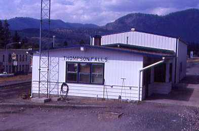 The Northern Pacific Thompson Falls station at Milepost 31.5. Our train next travelled through the town of Thompson Falls, named for David Thompson, an early very prominent British explorer and Northwest Fur Company employee who traded in the area in 1809. This is also the location of the Thompson Falls Dam and hydro-generating facility.