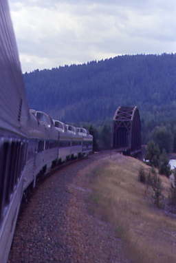 We crossed the Flathead River at Milepost 55.2 on a four-span through pin connected truss bridge built in 1896. It was refurbished in 1945 and is 720 feet long.