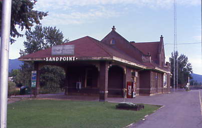 Northern Pacific Sandpoint station built in 1916. In 1882, the Northern Pacific Railroad rumbled to a stop here. The arrival opened a trade route for timber from North Idaho to the east coast and freight to the west coast. Passengers arrived and small communities sprung up along the tracks. The railroad was a driving force behind the settling of North Idaho.