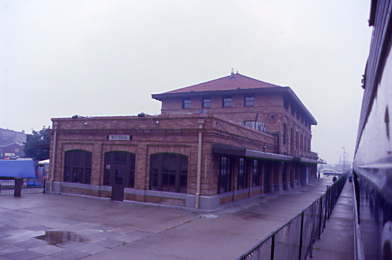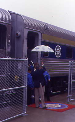 Following another continental breakfast then watching ESPN's Sports Center, we went down and boarded the buses for the train. It was still very wet and overcast but with less smoke.