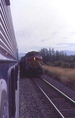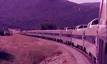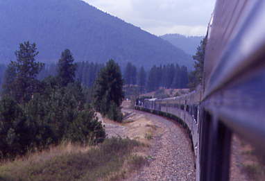 8/25/2003 Up early as usual and down the stairs for yet another continental breakfast, we returned to the room and watched the Weather Channel to see Tropical Storm Ignacio over La Paza, Baja California and I was wondering if the moisture would reach Santa Ana, but it was too early to tell. We went down to the bus and back to the train for our final days ride on the Montana Daylight. The Montana Daylight 8/25/2003