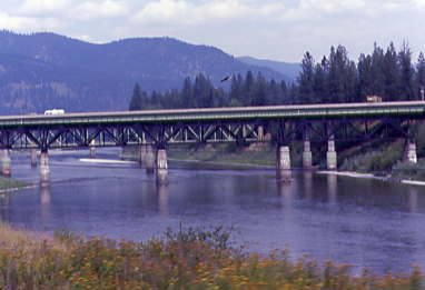 Starting today's new mileage, we crossed the Clark Fork River at MP 218.7 on a combination through truss and deck plate girder bridge, at a length of 878 feet and built in 1908, on our way to St. Regis and De Smet.