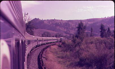 The route over Evaro Hill joined ours and it amazed me that two days ago, you could not see the mountains we went through when we climbed that hill. The Montana Daylight made its way through a few cuts to reach De Smet, where we rejoined the line we left yesterday, which ended my new mileage. I returned to the dome car for the rest of the journey into Missoula.
