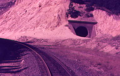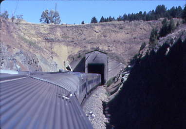 Our entry into and exit from Mullan Tunnel. Upon exiting, I went to the rear platform for our eastward descent.