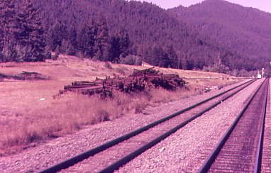 The former Milwaukee Road grade paralleled the Northern Pacific and the bottom of the overhead wire poles remain.