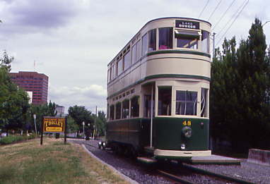 In 1984, the Southern Pacific filed for abandoning the line from Lake Oswego to Portland. A Consortium of local governments and agencies acquired the line to preserve it for future transit use. In 1987, the Willamette Shore Trolley was born. The first car on the line was Blackpool Double-Decker 48, operated by the Oregon Electric Railway Historical Society. Later, a different entity operated other heritage trolleys on the line. The OERHS took over the service again in 1995 with the double-decker and later with a Portland Brill Master Unit streetcar.
