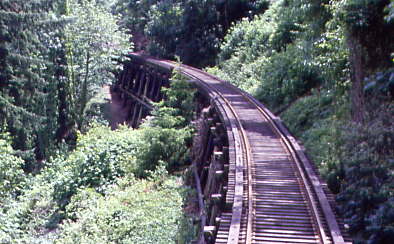 The trolley crossed a long curved trestle along the face of a rock cliff above the Willamette River.