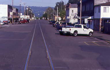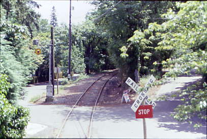 Willamette Shore Trolley 6/14/2003The right-of-way of the WST dates back to the 1880's as a narrow-gauge steam railroad linking Portland to Oswego (as Lake Oswego was known back then) and south into the Willamette Valley. The Southern Pacific acquired the line and converted it to standard gauge. In 1914, the line was electrified and Red Electric Interurban service was born. One could board a Red Electric Car and ride to Portland, Beaverton, Hillsboro, Newberg, McMinnville and Corvallis. In 1921, the Elk Rock Tunnel was opened, replacing a wooden trestle that went around Elk Rock. Passenger service ended in 1929, but freight service continued until 1983.