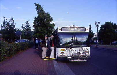 Up early with anticipation of today's train ride and its accompanying new mileage, I prepared myself for the day and went downstairs for a continental breakfast. It was a beautiful clear morning as I walked down to Portland Union Station to wait for the shuttle bus to Linnton. All the passengers who did not drive out to the train were waiting in front until a single bus approached the MAX bus station across the street and the driver came over to get us.