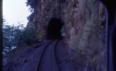 I detrained, walked over to the depot building for some postcards and a view of Lake Oswego. On the return ride, we paused at the tunnel entrance for a history lesson. The line built in 1887 by the Portland and Willamette Valley Railway as a narrow gauge line and in 1892, the line was in full control of the Southern Pacific then converted to standard gauge. In 1895, the third rail was removed and it was sold to the Nevada-California-Oregon Railroad. In 1912, the line was electrified and "Red Electric" was in operation. Because of falling rock along Elk Rock cliff, it was decided a tunnel would be built and on December 5, 1921, electric train 301 was the first train through the new tunnel. The last electric operations occurred on October 5, 1929 but freight operation continued until 1984 when the line north of Wilsonia was abandoned.