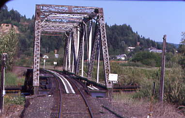 At a grade crossing in Knappa was an operating wig-wag signal then we returned to the sloughs with the Lewis and Clark National Wildlife Refuge on Horseshoe, Marsh and Karlson Islands. The train ran through Svenson with its large houseboat population then beneath Fern Hill prior to running along Cathlamet Bay before reaching the John Day draw bridge at MP 94.8, where a section crew was waiting for us so they could return to work.