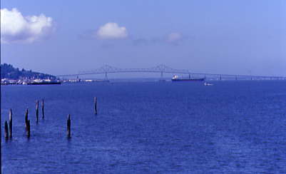 The Lewis and Clark Explorer proceeded to Tongue Point and after rounding it, Astoria and the four-mile-long Astoria-Megler bridge, which carries Highway 101, came into view.