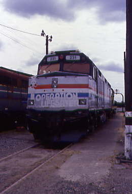Amtrak F40PH 231 built by Electro-Motive Division in 1977. It worked for Amtrak from 1977 through 2001, pulling many trains across the midwest and western parts of the United States, with some trips to the eastern region as well as Canada. In October 2001, 231 operated its last revenue trip on a San Joaquin train into Oakland and was towed dead-in-train on the California Zephyr to Chicago, and then to Beech Grove, Indiana for disposition. Chris Fussell, a fan of the locomotive, then raised over $30,000 in ten days in fall of 2002 to purchase the locomotive for preservation. After it was transported from Indiana to the Brooklyn Roundhouse, 231 was donated to the Friends of SP 4449 Inc. a volunteer organization Chris volunteered at. It is owned by Dynamic Rail Preservation Incorporated.