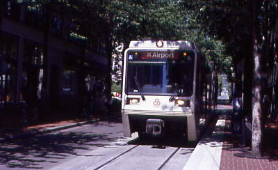 6/16/2003 Sleeping in late and following a continental breakfast, I prepared myself for the day then watched TVLand until I checked out then walked the three blocks to the MAX Light Rail stop and waited for a Red Line trolley to the airport, where I obtained my boarding pass from an Alaska Airlines machine using only my mileage plan number and earning another 1,000 points in the process. As I went through security, the extra set of car keys, which I keep in my wallet to avoid lockouts, set off the detector and I was taken over to a secondary security area where I was wanded but was able to keep my shoes on. I went to the Stump Town Bar and Grill for some buffalo chicken Wings for lunch and ollowed that with a cookie dough and chips ice cream cone as I enjoyed the views before going to Gate C-11.