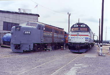 On the left is Long Island Railroad power car 613, nee Spokane, Portland and Seattle FA-1 866 built by American Locomotive Company in 1950.