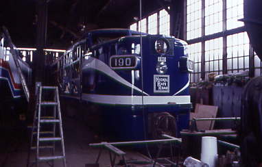 Chris then took me inside the cab of 231, which brought back a flood of memories as I had ridden behind it many times. I also met Chris' mother, who was working at masking the cab to be repainted. Next we toured the roundhouse.