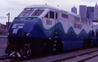 Following a restful night, I taxied back to King Street Station for my Amtrak Cascades train to Tacoma and found Sound Transit F59PHI 901, built by Electro-Motive Division in 1999, on my way out to the train.