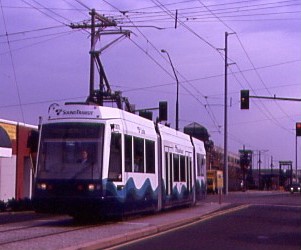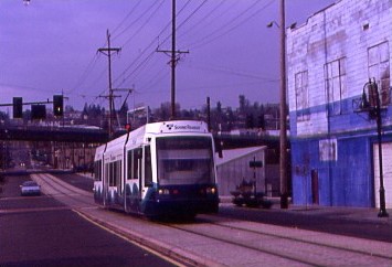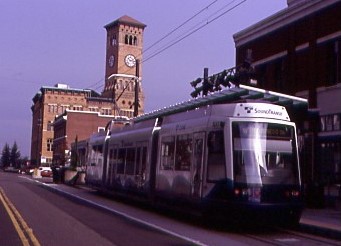 I found the Link stop then went behind the freighthouse and saw the new Sounder station with a train ready for the Monday morning commuter rush. Inside the west end of the freighthouse was a restaurant with Milwaukee Road pictures from over the years. I returned to Tacoma Dome station to wait for the 10:00 AM train and enjoyed the passing of BNSF and Union Pacific freights at the base of the hill two blocks away. The train came up the hill with a transit vehicle and a Tacoma police car running behind it, testing the line for the day's operation. The operator announced he would be back in twenty minutes to pick up me and a beautiful woman who was also waiting to ride.