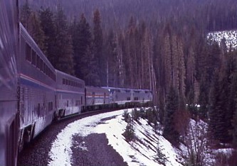 We departed on time and met Union Pacific 5779 at Clackamas with a Canadian Pacific Railway locomotive in the consist, then met the northbound Coast Starlight running three hours late at Millersburg just outside of Albany. I had a 5:00 PM dinner reservation and ate a T-bone steak that was left over from the northbound trip stock. It was an excellent meal and ice cream was the perfect dessert. I enjoyed the views from my darkened room until the showing of tonight's film in the Pacific Parlour Car was announced, which was the very enjoyable "Bruce Almighty". Following a series of nice conversations, we arrived at Klamath Falls for a fresh air break before we left twenty-five minutes late and I called it a night.