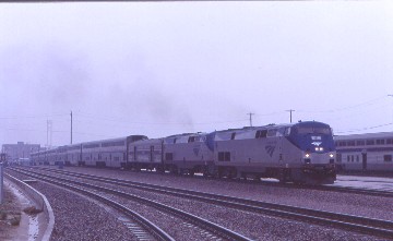 After that train departed, a dead-heading bi-level train passed through and ten minutes later, my two-car RDC Train 2115 arrived to pick up the large group of passengers going west. I chose a seat in 2006, while 2002 was the lead unit. I really wanted to ride these former VIA Rail of Canada, originally Canadian National cars and the rumble of their engines brought back fond memories of other times I had ridden in RDCs. Where else in 2003 can you ride an RDC in regular commuter service in America?. I have always loved the acceleration of an RDC engine and the hum it produces while rolling down the rails and remembered the first RDC I saw while camping in South Edmonton, Alberta along the Canadian Pacific Railway line down to Calgary very late in the evening's twilight back in 1972. I knew I really wanted to ride one someday and I have had plenty of opportunities, namely BC Rail, VIA Rail of Canada and now TRE.