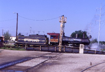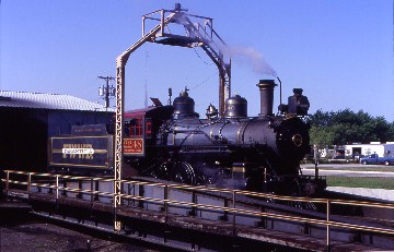I drove out to Grapevine through the stop-and-go rush hour traffic, stopping for petrol and food, then found the train station with no problem and saw the passenger cars. I met Bill, our fireman on today's run of former Southern Pacific 4-6-0 2248. She pulled out onto the turntable which was built for the Santa Fe in 1927 and originally came from Slaton. In 1974, it moved to Saginaw before being sold on August 25th, 1992 with the condition to be off the Santa Fe property in 48 hours. It arrived in Grapevine on two days later.