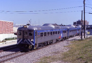 I went out to TRE Train 2713 and found that great train crew that had saved the day this morning in a much more relaxed state. I planned to ride as far as CentrePort where I would then switch to a Fort Worth-bound train after a few minutes wait. I sat in the same seat I had this morning but on the other side on this bi-level train and I finally saw Texas Stadium, home of the Dallas Cowboys, to the north and it was a relaxing trip. I detrained to wait for Train 2115 to Fort Worth and on the way there, at South Irving, we met the three-RDC Train 2720 and passed Rock Island Center, named after the former owners of this line. In fact, this is the third segment of the former Rock Island line that I have ridden, since I rode Metra from Chicago to Joliet, Illinois, Union Pacific 3985 excursion last June down the Spine Line from Minneapolis to Kansas City, and now this line between Dallas and Fort Worth. We arrived at CentrePort early and I detrained.