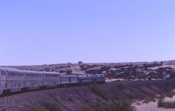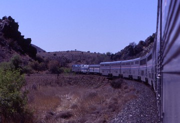 We departed El Paso on time and I listened to Frank Zappa's "Apostrophe" and started to read "Streamliners" by Bob Johnson and Joe Welsh with Mike Schafer. We went into the siding at Afton, New Mexico, for a hot eastbound freight and were held out of Deming for another one. I still did not feel that well and having skipped lunch, thought I should eat something so went to the diner to order from menu 3. I was not all that hungry so only had half of the beef tenderloin. Stephen thought I looked horrible and on the way back to my sleeper, John felt my head and said I was burning up. Me playing doctor to my own disease ordered lots of sleep so I went to bed with an extra blanket about Benson and the fever broke about Maricopa. I had a weird language dream, a first for me, where people were speaking in odd languages, yet I was able to understand them all. It was a long night.