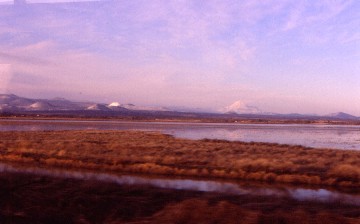 We proceeded to the BNSF South Klamath Falls yard where we waited to receive our orders and while all that was happening, I enjoyed a snack car breakfast. We left the yard at 5:50 AM, received our track warrants and went out in the early morning, passing the Klamath Falls Airport. It was going to be a great day of train riding. We travelled among the sagebrush and fields with Mount Shasta looming off in the west, then passed through Merrill before continuing to Malin, where we turned south as we are making this trip as Extra 112 West. We received our next track warrants at Kephart then crossed into California before we traversing the Modoc Line at the signalled junction at Stronghold before running by the Tuklelake National Wildlife Reserve.