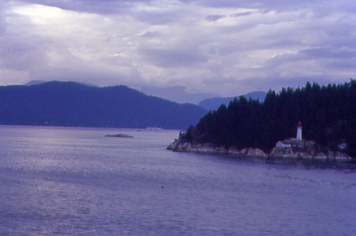 The ship sailed by West Vancouver to the lighthouse at the opening to Howe Sound.