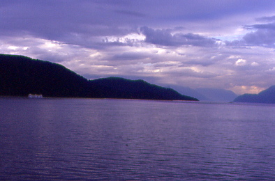 The ship passed Bonilla Island with its lighthouse and the Coast Range standing behind it then we started the voyage through Hecate Strait as we proceeded into the night. It was at this point I called it an evening.