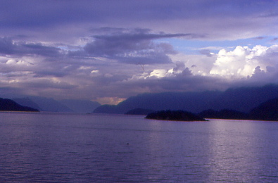 Alaska Airlines Flight 679 8/23/2004We walked over to Gate D5 and had to have our boarding passes stamped that our identification had been checked then boarded at 11:10 AM and filled out our Canadian Customs forms as we sat on this MD-80 plane. Our flight would only take thirty-one minutes to Vancouver, British Columbia, departing the gate at 11:49 AM and taking off at noon. It was another flight over clouds with me having the window seat this time. We landed at Vancouver International Airport at 12:35 PM and were off the plane ten minutes later, making our way through Canadian Customs then met the Princess Cruises staff, who directed us to the bus to take us to the Sun Princess.
