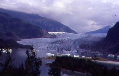 I walked back to the visitors center for more views of the Mendenhall Glacier, which is one of 38 large glaciers that flow from the 5,000 square mile Juneau Icefield.