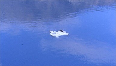 Nearing the glaciers, I spotted a bay seal out on an iceberg. As the ship neared the seal, it dove into the safety of the water.