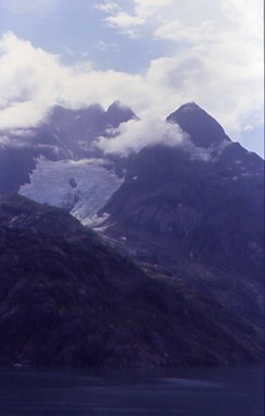 Mount Quincy Adams came into view out of the clouds. After spending a thirty minute stop at Margerie Glacier, the Sun Princess turned and proceeded down Tarr Inlet of Glacier Bay. I went and checked my e-mail and when finished, noticed the ship was turning up John Hopkins Inlet.