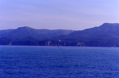 The ship passed the lighthouse at Cape Hinchinbrook and entered the Hinchinbrook Entrance to Prince William Sound.