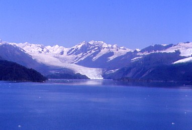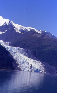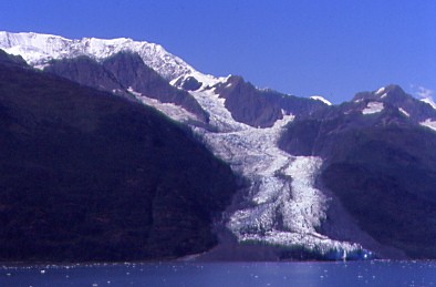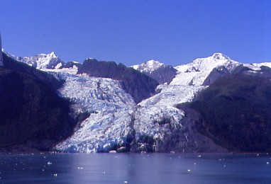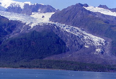 Passing the Columbia Glacier, which descends from an icefield 10,000 feet above sea level, down the flanks of the Chugach Mountains, and into a narrow inlet that leads into Prince William Sound. It has long been an archetype of the world's most rapidly changing glaciers. The Columbia is a large tidewater glacier, flowing directly into the sea. When British explorers first surveyed it in 1794, its nose, or terminus, extended south to the northern edge of Heather Island, near the mouth of Columbia Bay. The glacier held that position until 1980, when it began a rapid retreat that continues today.