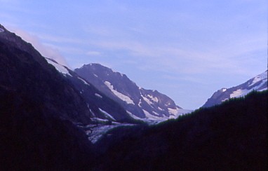 As the last daylight was still shining, a last look at Spencer Glacier. I talked with our on-board guides until we reached Portage and worked on my story until after Girdwood, as darkness took complete hold then chatted with On-board Supervisor Karen Smith most of the way back to Anchorage.