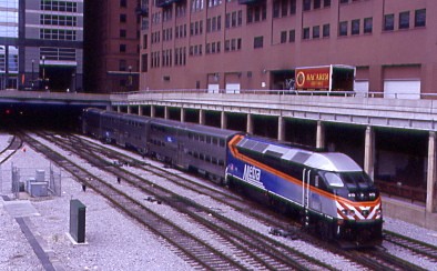 On the way to the Ogilvie Transportation Center, I stopped by the bridge that overlooks the north entrance to Chicago Union Station and caught three Metra trains in ten minutes. At Ogilvie, I bought a round trip ticket to Kenosha and waited to board my train.