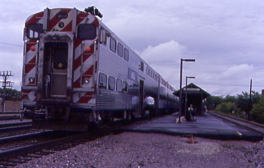 6/24/2004 I awoke at Effingham with the train running thirty minutes late then rode the lounge car watching the sunrise before enjoying French Toast and sausage as the train stopped in Matoon.
