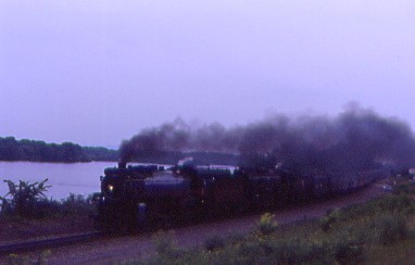 The 2816/261 doubleheader came by in the pouring rain. We stopped for petrol and an Arby's for me while Bob bought takeout from Perkins in Cottage Grove then we drove back in the rain to the Days Inn, ending an exciting chase of the doubleheader. A special thanks to Dennis for all of his knowledge, driving skills and friendship on this trip. This was a great day of railroading and the weather made it more special. We watched "Something about Mary" before we called it a night.